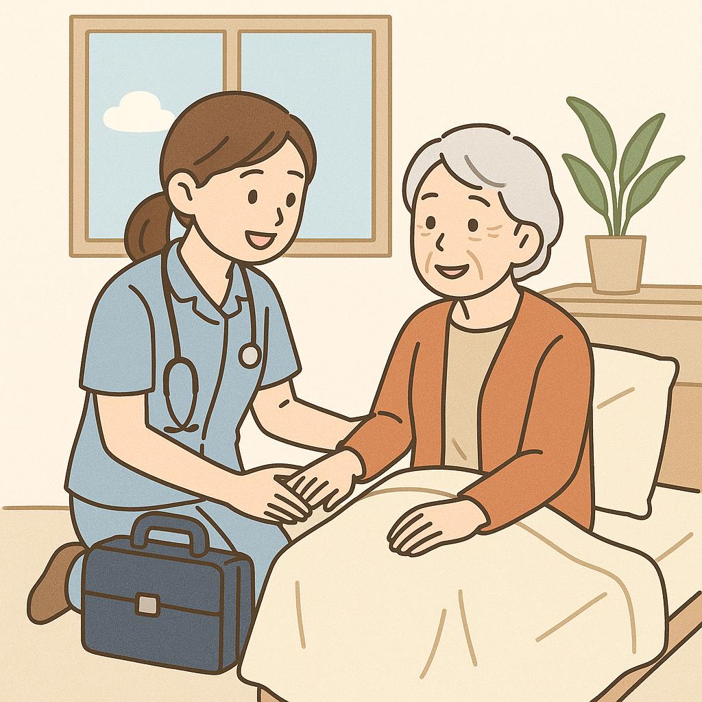 私たち訪問看護ステーション愛敬苑は、地域に根ざした看護の専門職として、ご利用者さまがご自宅で安心して過ごせるよう、医療と生活の架け橋を担っています。